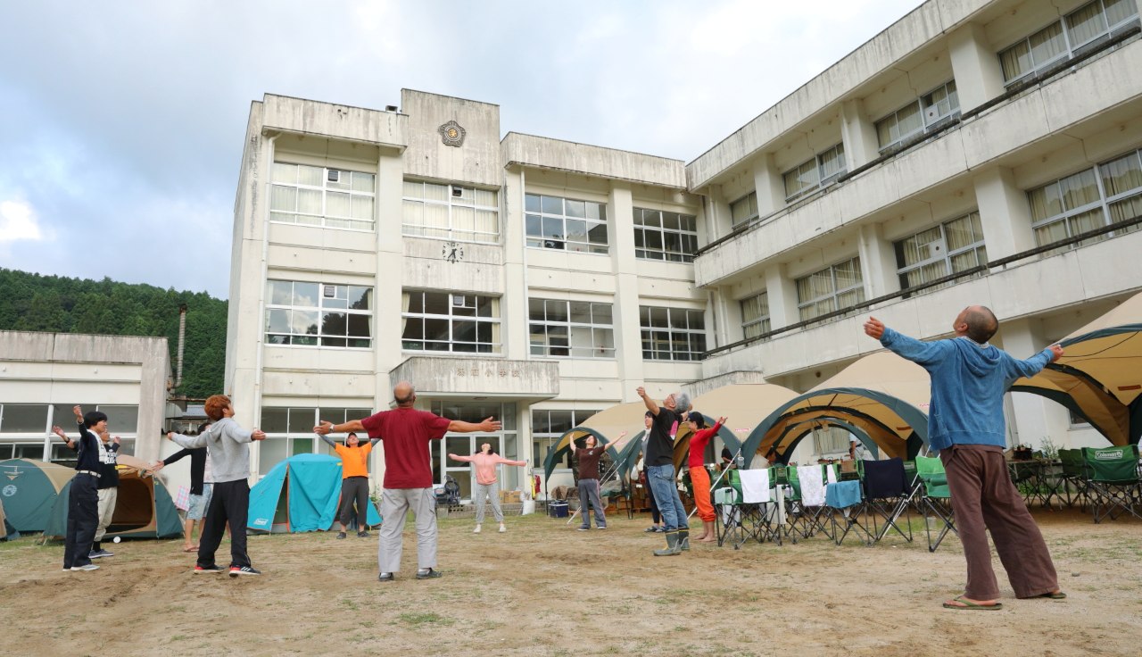 ときには行政や地域から廃校や公共施設をお借りします。または連携アウトドア企業から製品支援でいただいたテントやタープでキャンプを張り、テント/車中泊などで共同生活をしています。