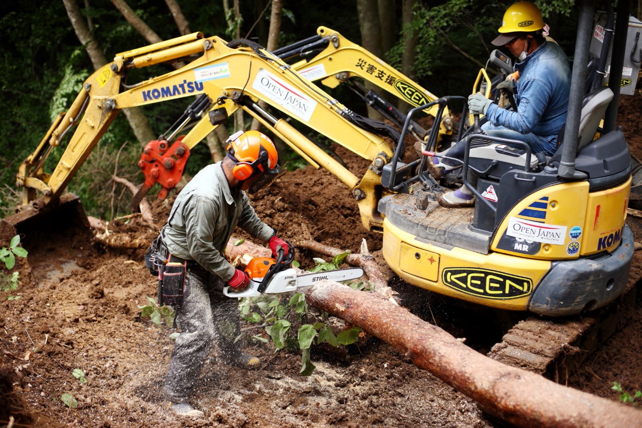 山里での災害で土石流や流木などを取り除きながら、地域の方々と力を合わせて活動してきました。ときには地域の方にチェーンソーの扱い方や地元の食材のお料理方法などを教えていただきながら、山の知恵と暮らしを間近に見させてもらい学ぶことのほうが多いのが毎回です。