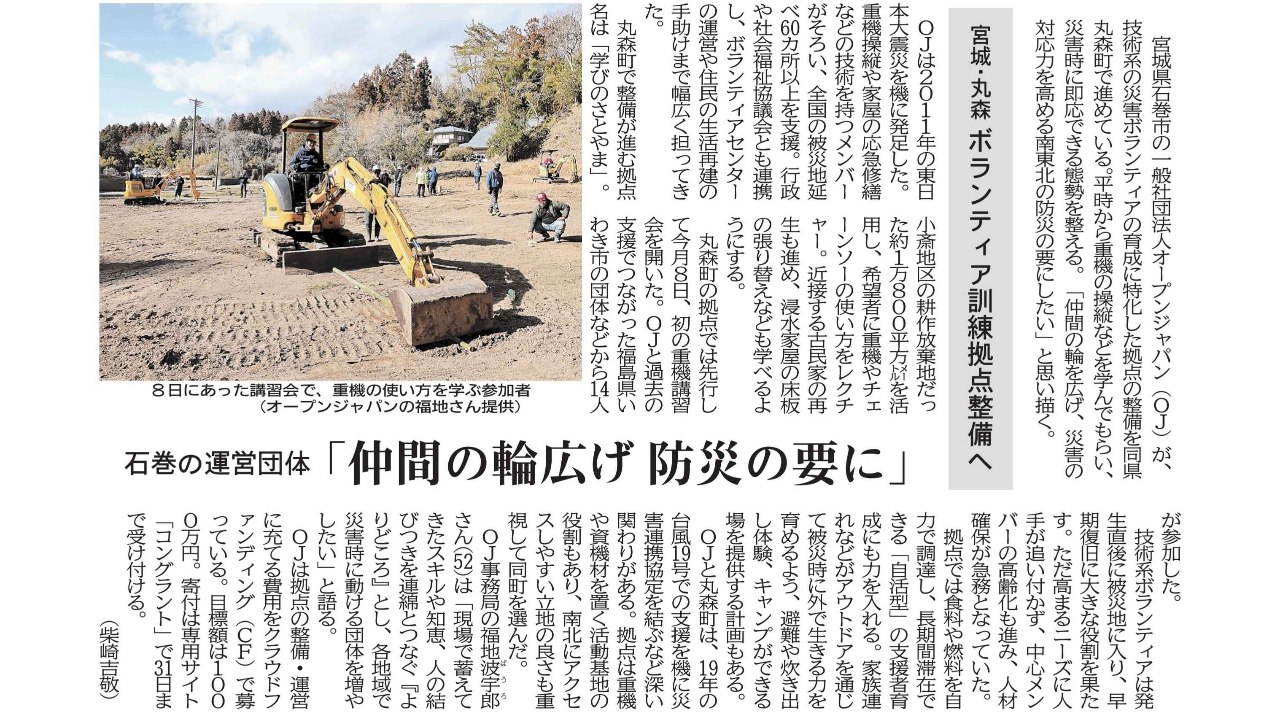 このたび、新しく丸森町に耕作放棄地を含むさとやまの古民家を取得します。さとやまの再生に取り組みながら、災害ボランティア・重機・チェーンソーの講習、炊き出しや避難経験、キャンプを家族で体験するアウトドア活動などができる場所を目指します。