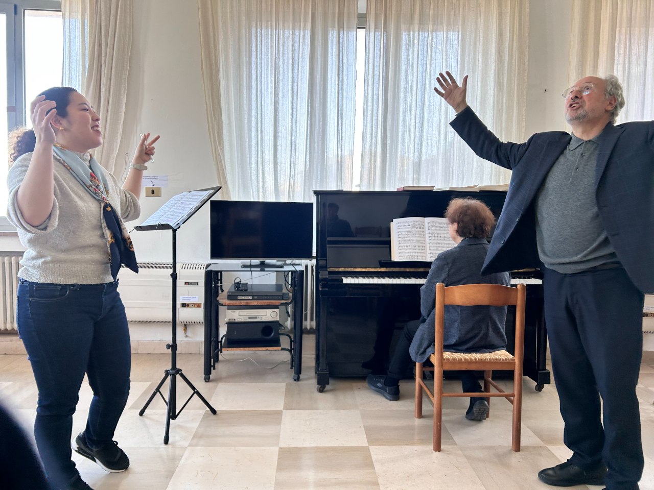 当財団と深い関わりのあるVincenzo De Vivo(ヴィンチェンツォ・デ・ヴィーヴォ)氏が芸術監督を務めるアカデミーAccademia d'arte liricaにて、マスタークラスを実施いたしました。ソプラノ歌手のAlla Simoni(アッラ・シモーニ)氏からは、厳しくも的確な助言をいただき、受講生たちは声楽の本質を掴もうと懸命に研鑽を積みました。また、De Vivo氏自らによる熱心な直接指導も行われ、非常に密度の濃い時間となりました。