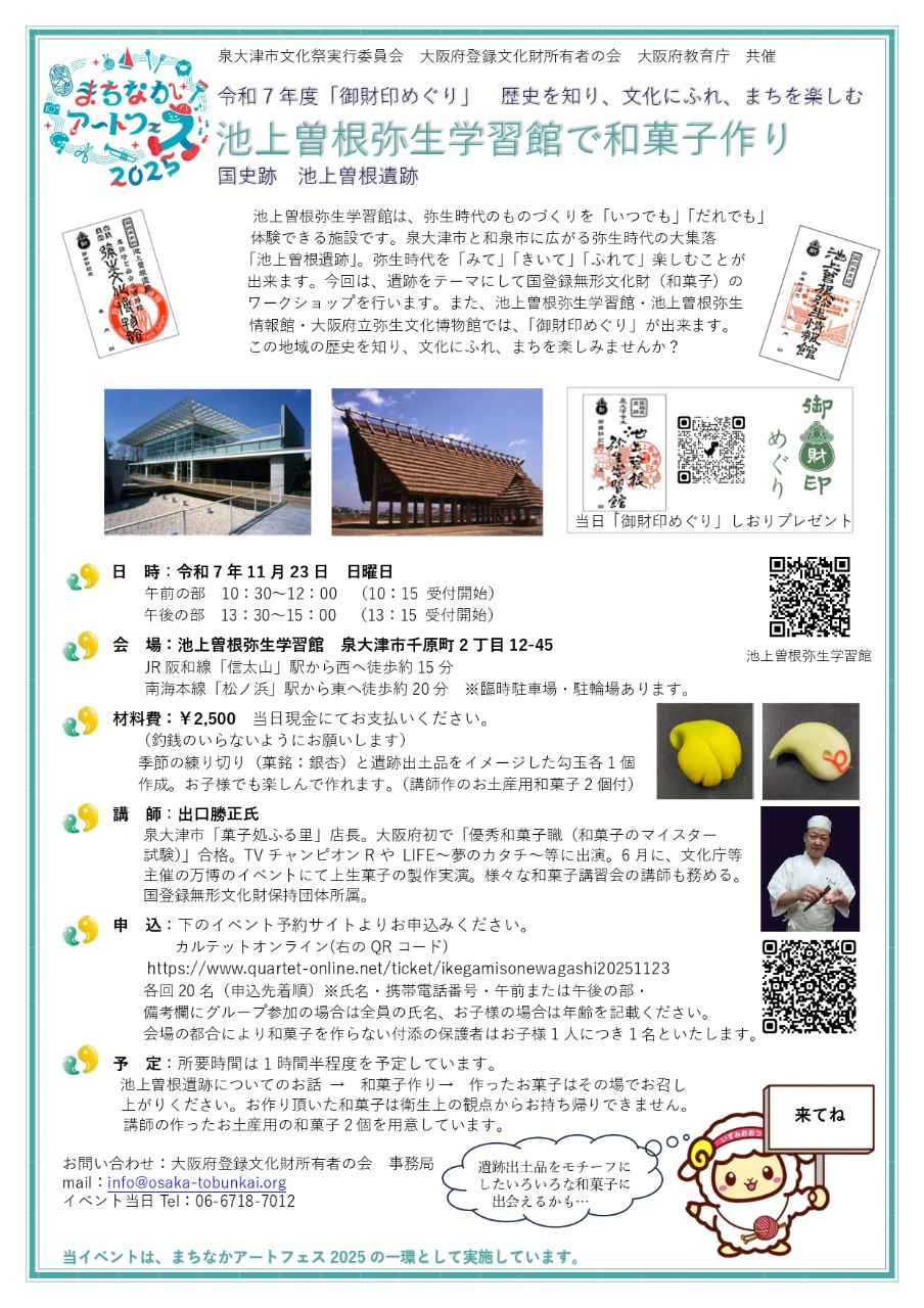 ・文化財活用イベントの企画・運営                            「酒蔵映画祭」「豊中市岡町で御財印めぐりとお餅つき」「八尾恩智で御財印めぐりと和菓子づくり」など