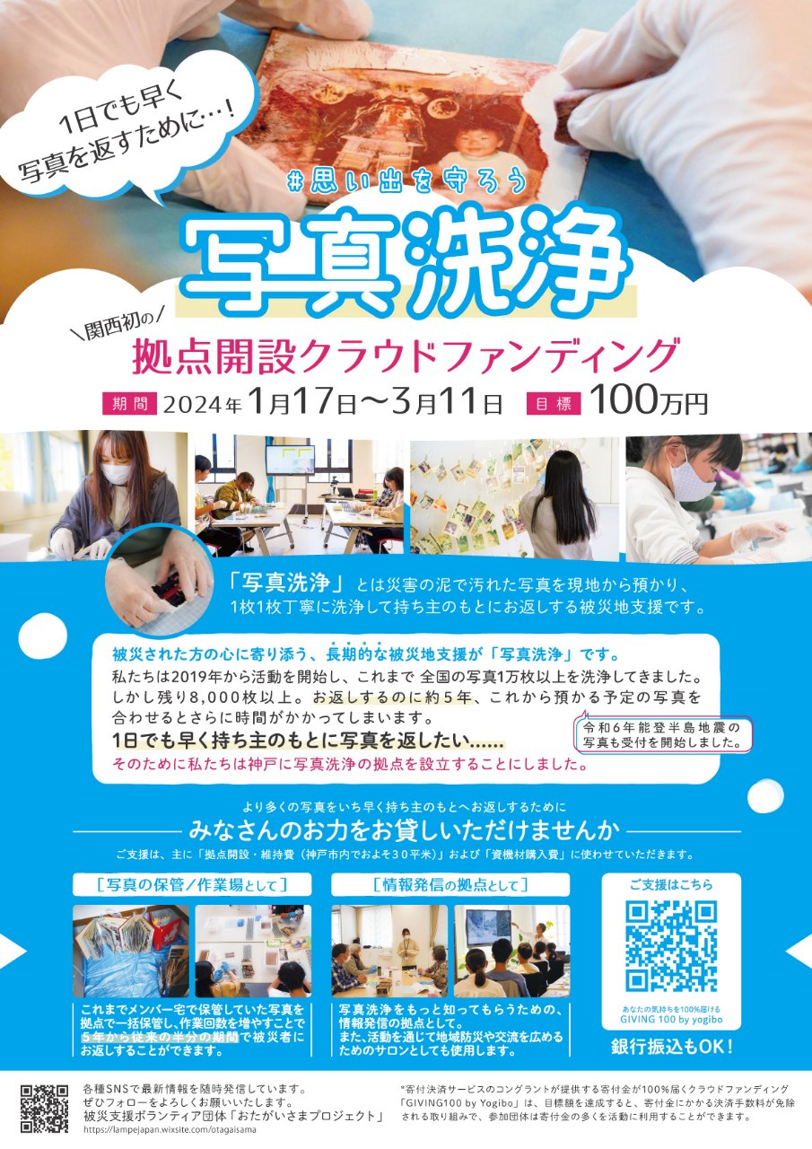 【#思い出を守ろう】水害で汚れた写真を洗浄する拠点を神戸に作りたい!(能登半島地震等、被災地支援)