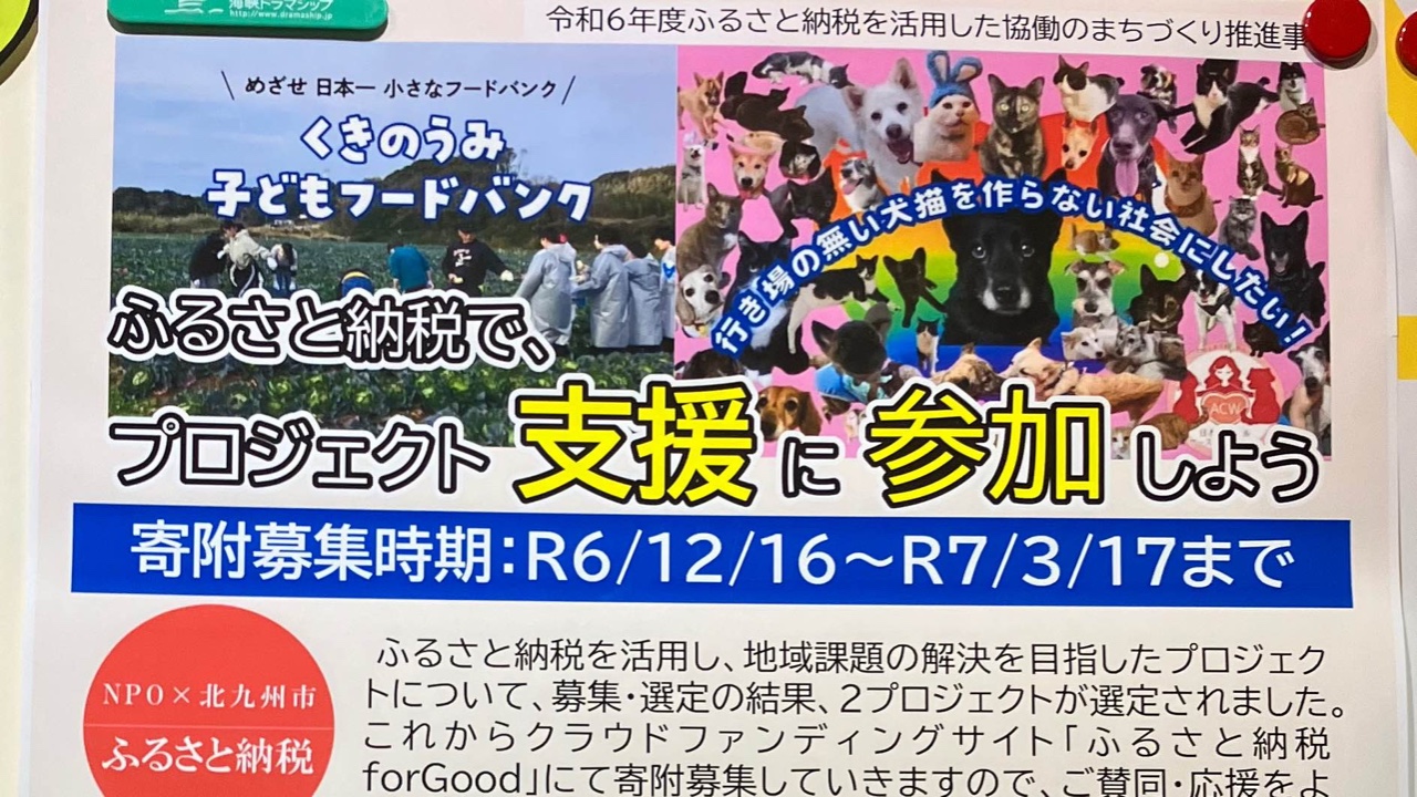 2026-01-04 07:00ふるさと納税のクラウドファウンディングで応援してください!あそけんのフードバンク活動を ふるさと納税で応援してください。 皆さんの既に収めることになっている大切な税金の使い道を、選んでいただく、というもの。 年が明けましたので、これからの投げ銭は、今年からの所得に対する来年からの税金から分けていただく、ことになります。 新たにリセットされてますので、今年こそは、ご支援お願いします🌟 ちょっと仕組みがややこしいんですけど😀 年末年始もみんなで手分けして、 頑張って食品のレスキューにまわっております✨ 記事だけでも是非ご覧ください! https://furusato-forgood.jp/projects/0003892026-01-04 07:00ふるさと納税のクラウドファウンディングで応援してください!あそけんのフードバンク活動を ふるさと納税で応援してください。 皆さんの既に収めることになっている大切な税金の使い道を、選んでいただく、というもの。 年が明けましたので、これからの投げ銭は、今年からの所得に対する来年からの税金から分けていただく、ことになります。 新たにリセットされてますので、今年こそは、ご支援お願いします🌟 ちょっと仕組みがややこしいんですけど😀 年末年始もみんなで手分けして、 頑張って食品のレスキューにまわっております✨ 記事だけでも是非ご覧ください! https://furusato-forgood.jp/projects/000389