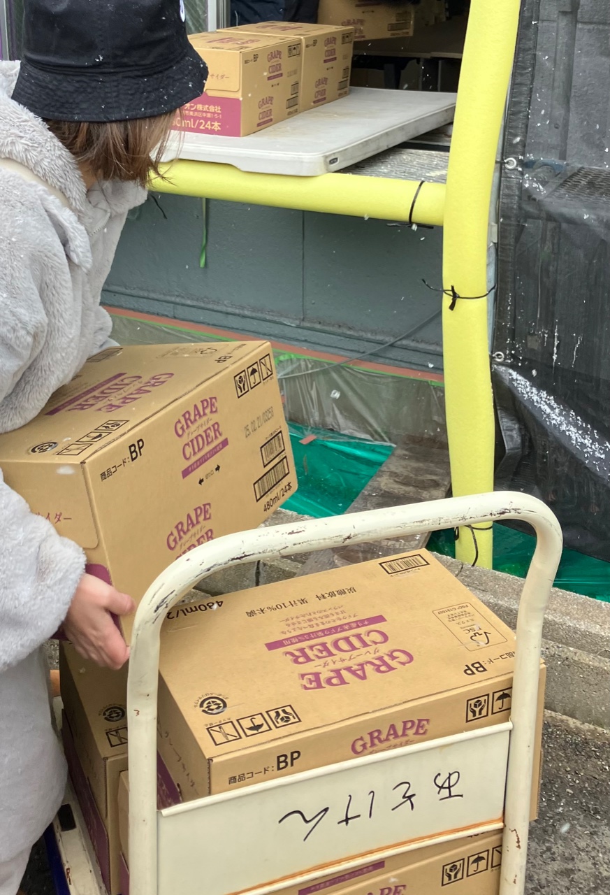 全部で2トンは運んだ気がする、、、賞味期限ギリギリのアイテムもあるので、早速来週皆さんに取りにきてもらわなくては!