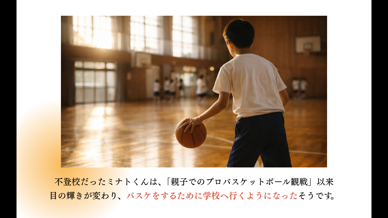 ミナトくんは、バスケをするために学校へ行くようになり、