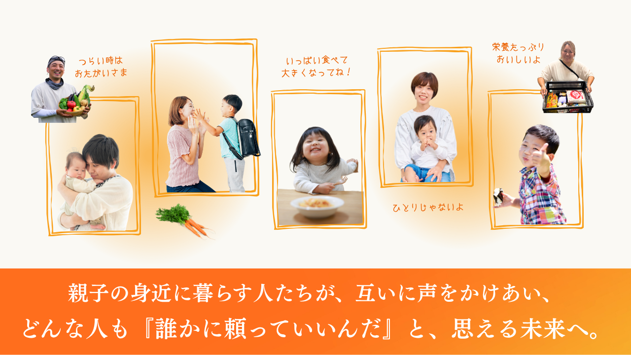 食のお届けをきっかけに、地域の人と親子が少しずつつながりを育み、やがて「頼っていいんだ」と思える。そんな社会を目指しています。