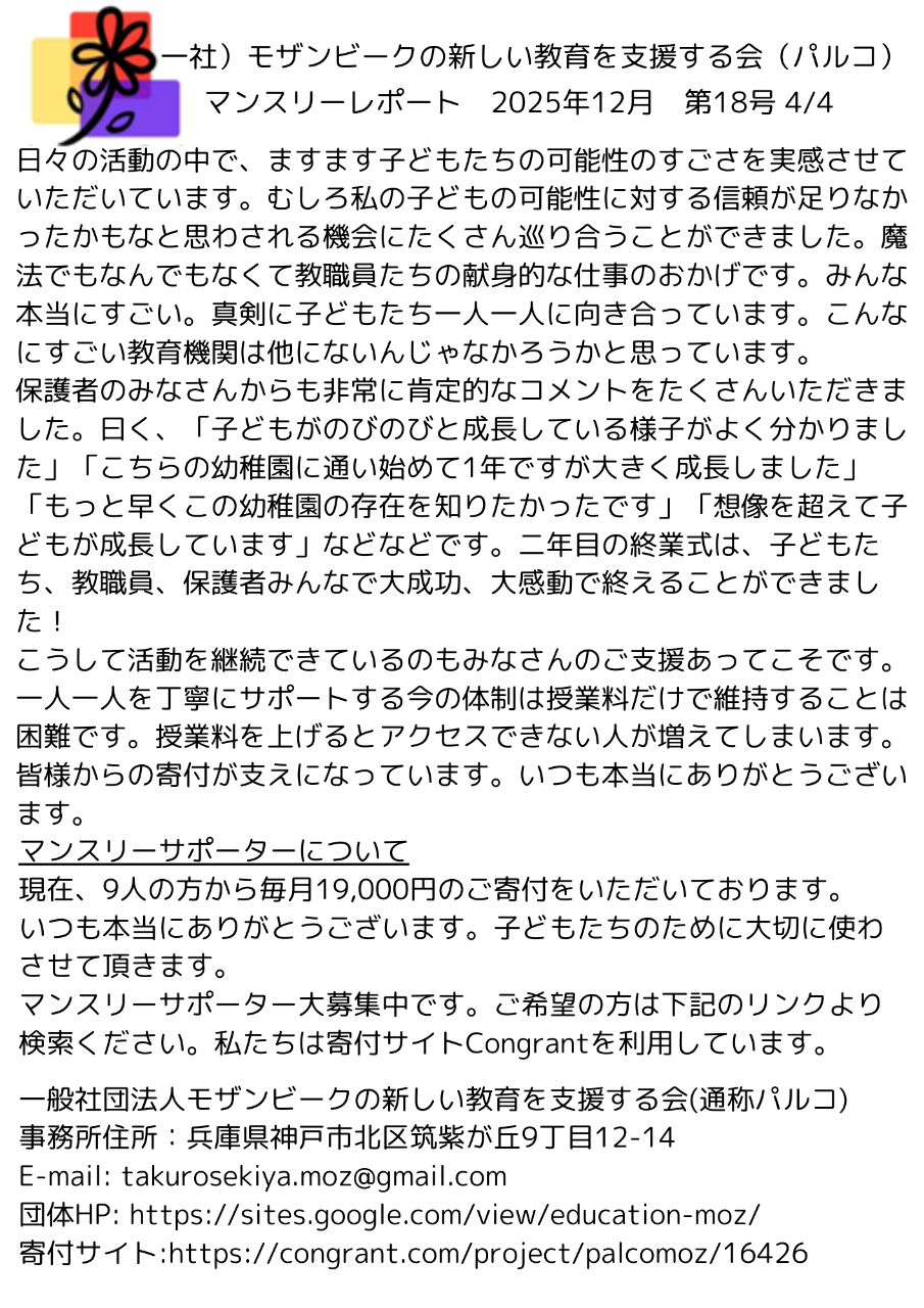 一般社団法人モザンビークの新しい教育を支援する会(パルコ)