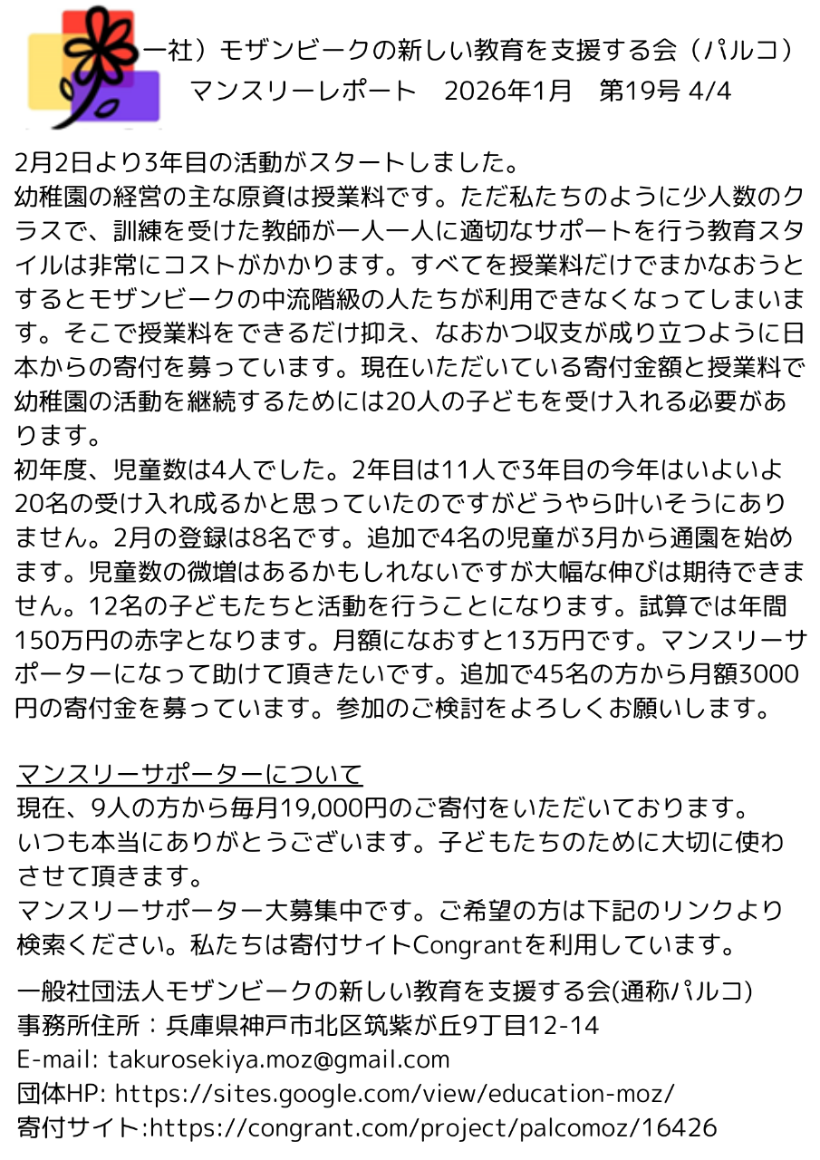 一般社団法人モザンビークの新しい教育を支援する会(パルコ)
