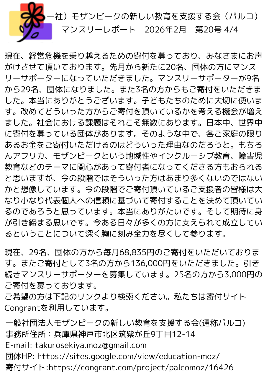 アフリカ南東部に位置する最貧国の一つモザンビークで活動しています。