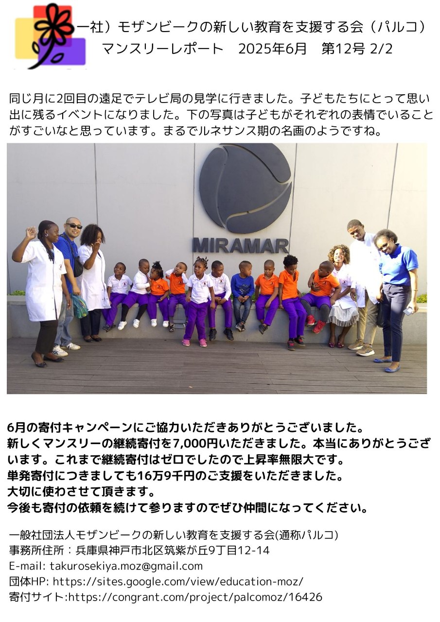 一般社団法人モザンビークの新しい教育を支援する会(パルコ)
