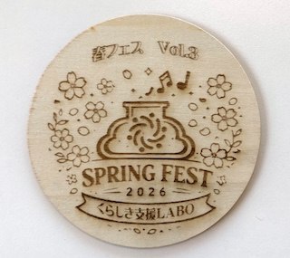 - 限定・木製コースター(第3回春フェス記念ロゴ刻印)