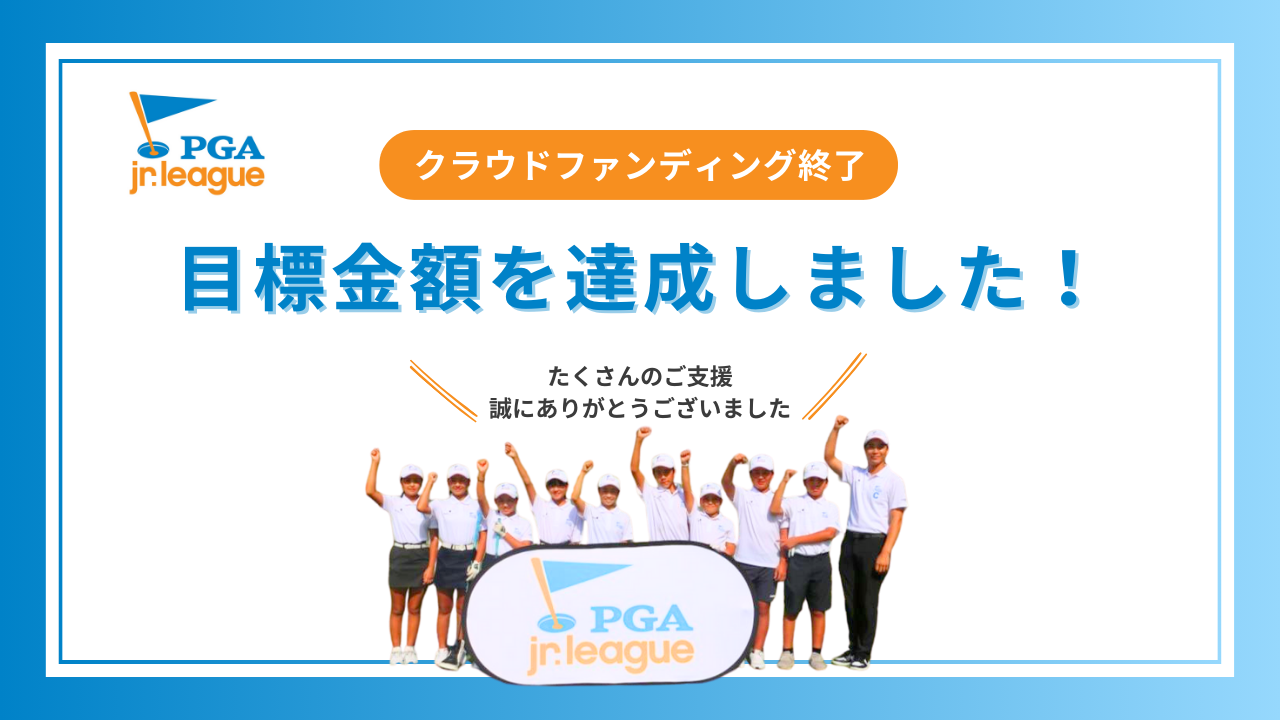 2024年4月15日をもちまして、「PGAジュニアリーグ」を全国へ拡げるためのクラウドファンディングは目標金額300万円を達成し、無事終了しました。