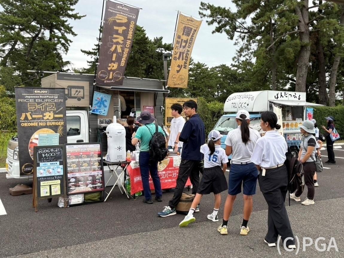 相模カンツリー倶楽部は乗用カートがなく徒歩のプレーとなる。猛暑の中プレーすることを考慮し、少しでも選手の体力的な負担が減るようキャディバッグを運ぶために2人乗りカートを貸し出しして下さった。