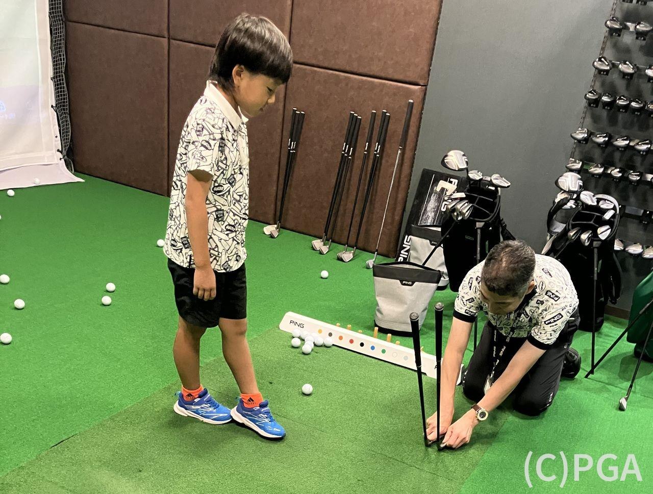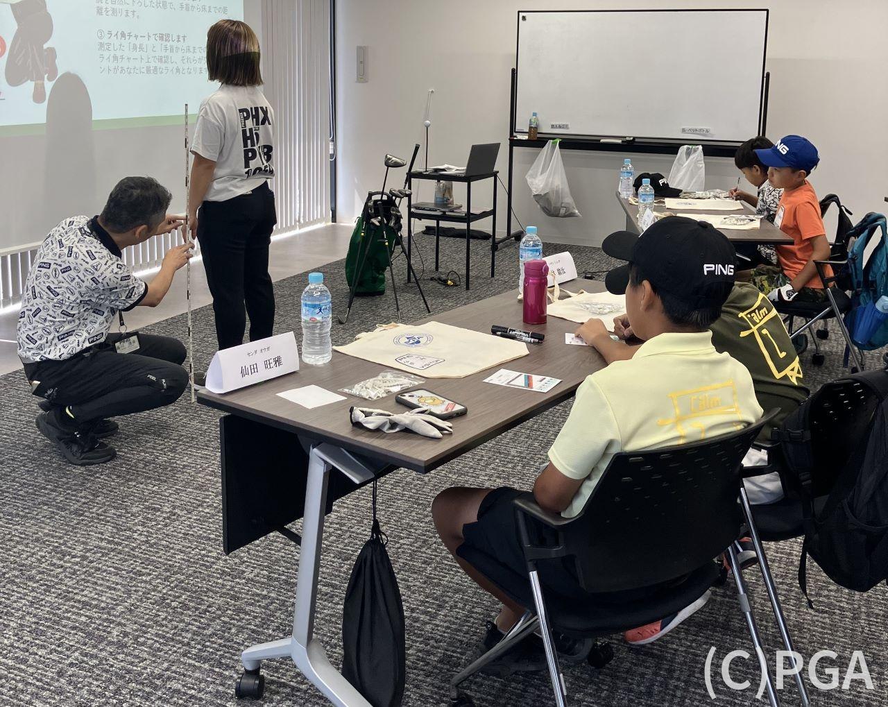 イベント当日は、ジュニアリーグ埼玉と一部の東京ディビジョンの選手を招待し、ライ角測定や試打、ゴルフクラブの工場見学を楽しんでもらった。