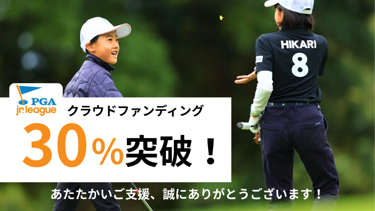 今月9月6日から挑戦しているPGAジュニアリーグ拡大のためのクラウドファンディングが進捗30%を突破し、現在112万1000円のご寄付が集まっています!