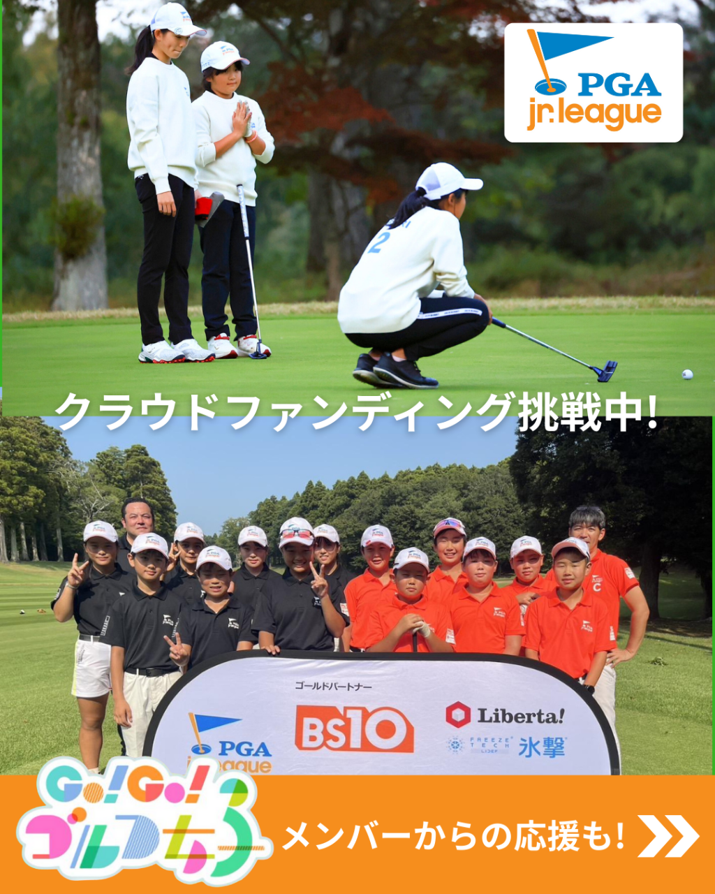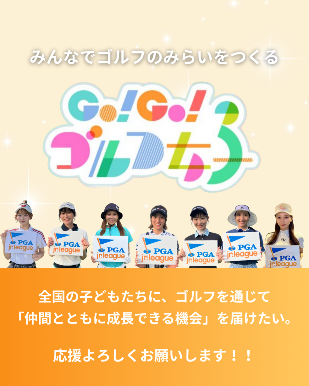PGAジュニアリーグのの取り組みに共感し、「みんなでゴルフのみらいをつくる」をテーマに奮闘する Go!Go!ゴルフ女子部メンバーの皆さんにも公式サポーターとして応援いただいています✨