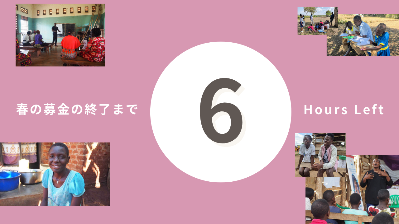 2025-03-31 12:00春募金終了まで、あと12時間!現時点で、45名の方に44万6,600円のご支援をいただきました。みなさまからのあたたかいご支援に心より感謝申し上げます。2025-03-31 12:00春募金終了まで、あと12時間!現時点で、45名の方に44万6,600円のご支援をいただきました。みなさまからのあたたかいご支援に心より感謝申し上げます。