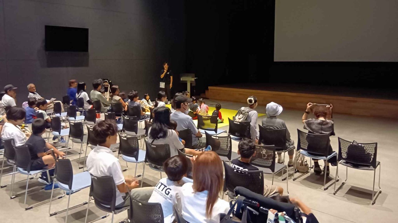 50名以上の参加あり、上映までの待ち時間には紙芝居の読み聞かせも実施。