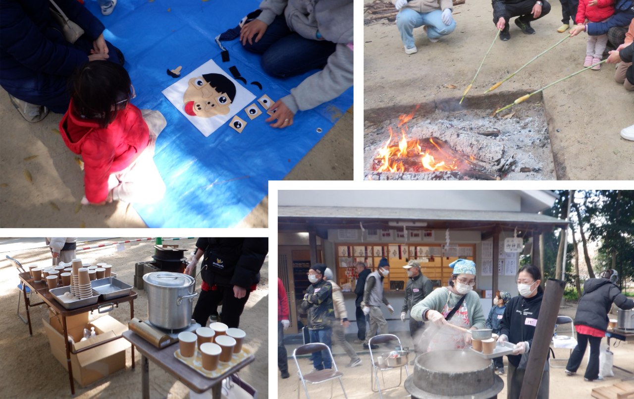 近隣の日野神社さんと地域のご協力を得て、境内で、とんどの神聖な火をお分けいただく地域交流イベント「火を囲む会」を毎年1月に開催しています。コロナ禍までは、餅つき大会を催してきました。