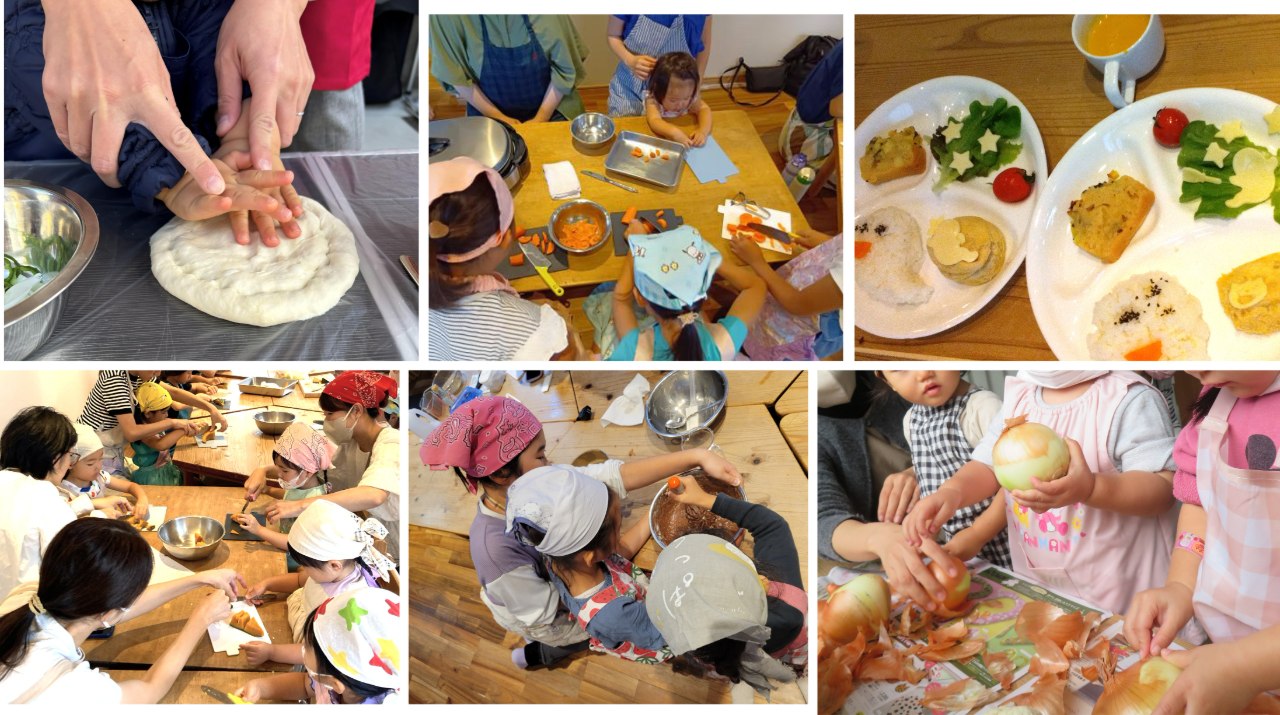 「作る~分け合う~食べる」をテーマに、季節を感じながら親子で楽しむ「おやこクッキング」を毎月開催しています。管理栄養士監修による、添加物を使わない安全な調味料と食材で、楽しく美味しく健康的なクッキングにこだわり、こどもの“初めて”を経験してもらえるように工夫しています。