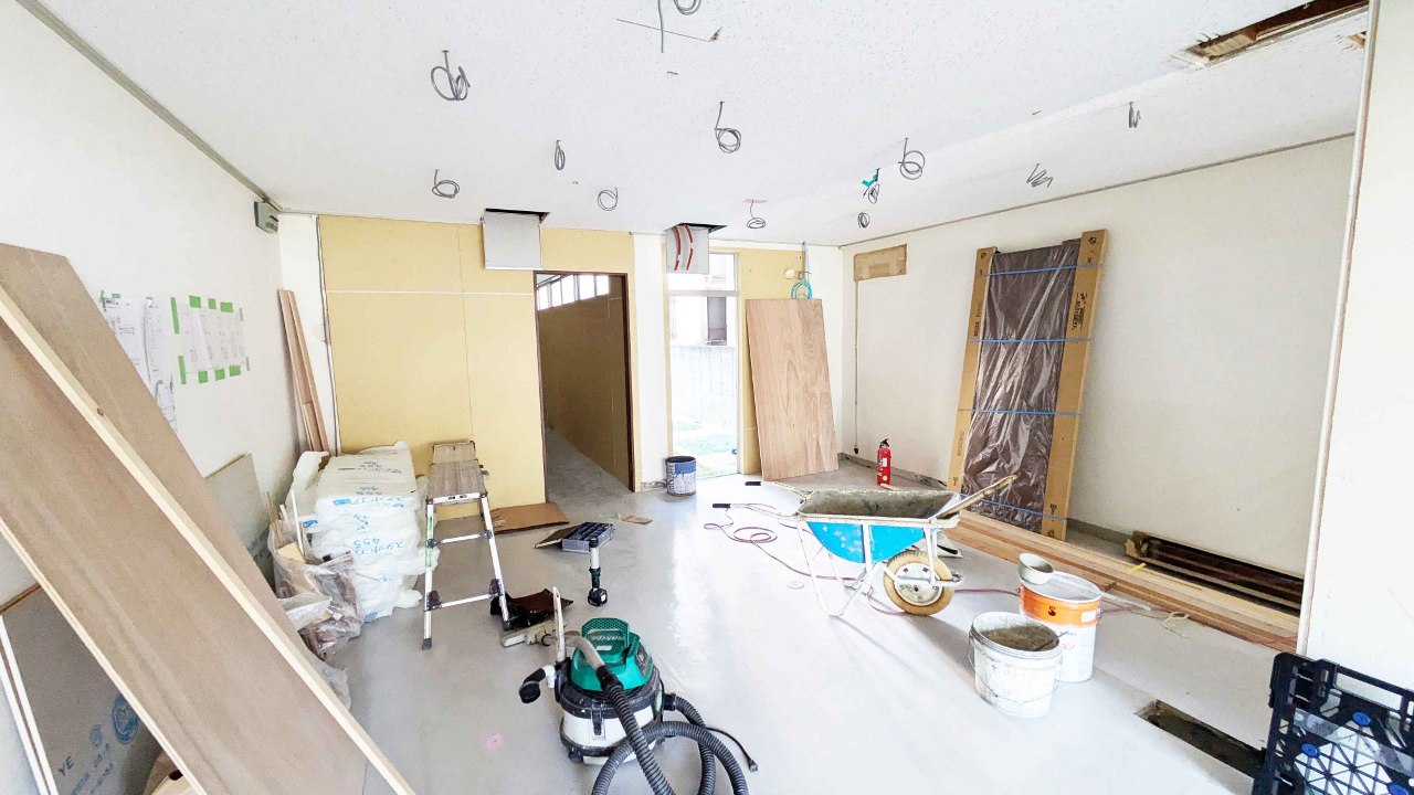 2024-08-15 11:25学習やプロジェクター投影を考えた照明配置お盆休み中も棟梁や左官職人さん、電気や水道業者さんに来ていただき、新しい交流拠点の改装工事が進んでいます。紙の図面を見ながらイメージしていたものが、実際に出来上がってくると嬉しいです! 現場では経年劣化などの不具合や雨漏りなど発生している部分もありましたが、予算内でなんとか収まるように工夫しながら工事が進められています。2024-08-15 11:25学習やプロジェクター投影を考えた照明配置お盆休み中も棟梁や左官職人さん、電気や水道業者さんに来ていただき、新しい交流拠点の改装工事が進んでいます。紙の図面を見ながらイメージしていたものが、実際に出来上がってくると嬉しいです! 現場では経年劣化などの不具合や雨漏りなど発生している部分もありましたが、予算内でなんとか収まるように工夫しながら工事が進められています。