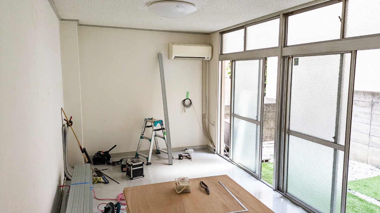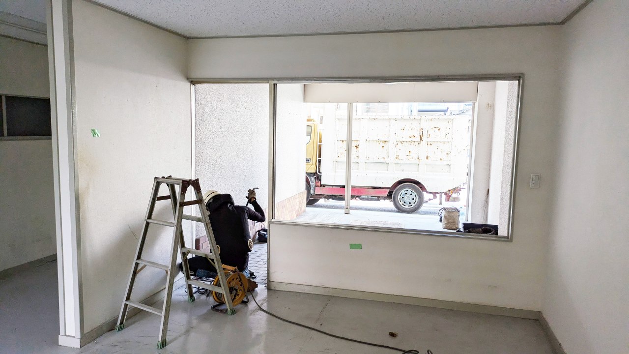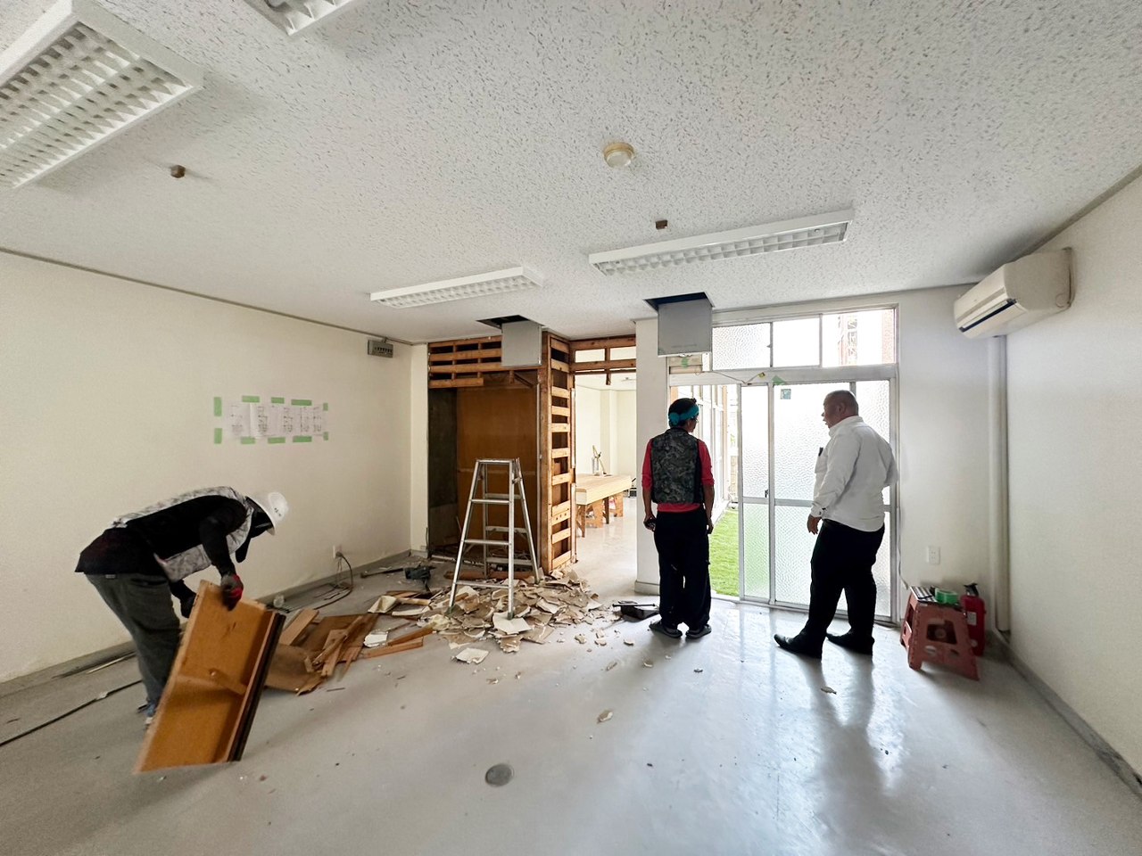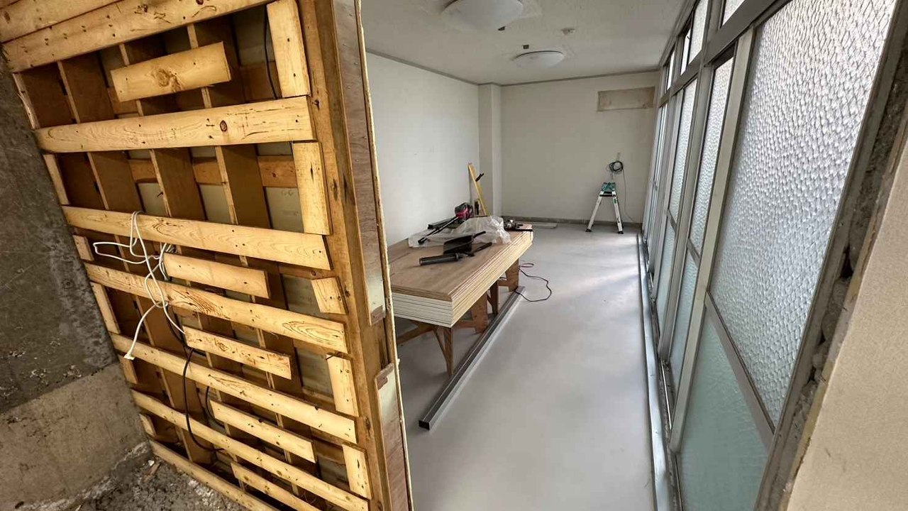 まずは空きテナントになっている部屋の壁やドア、給湯室などを新しいレイアウトに合わせて解体・造作していく作業から始めています。