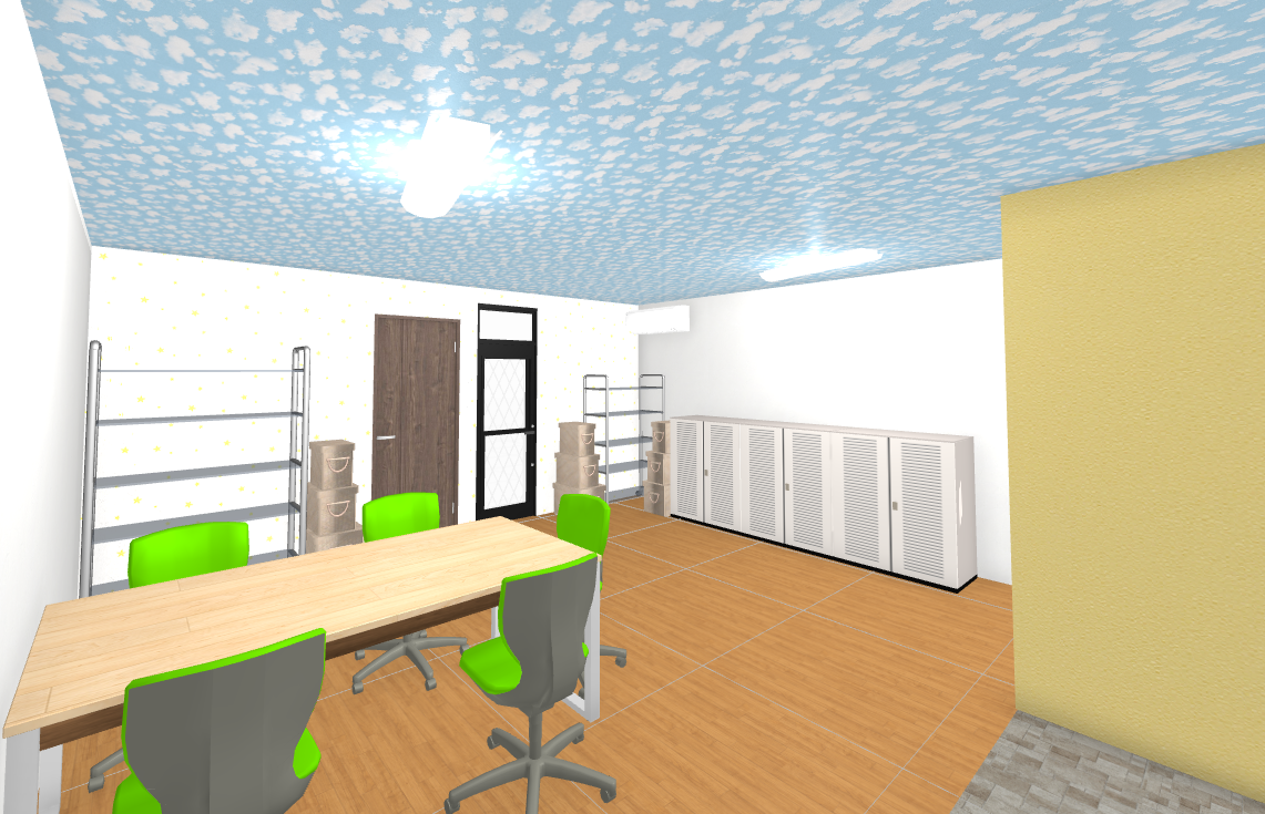 なんといってもインパクトがあるのが天井の青空です!こんな天井の部屋に入るだけで元気になりそうですよね。子どもたちも「わぁ~」「すごい~」と驚く様子が目に浮かびます。