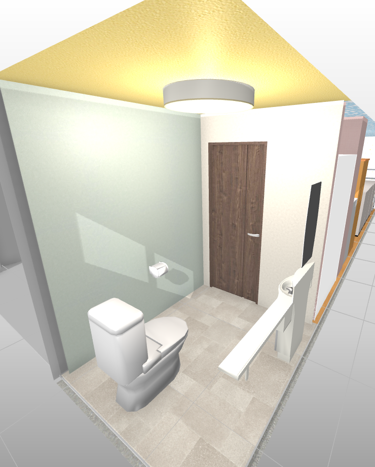 車椅子でも利用できるよう一般的なトイレより広い空間で、イメージ画像にはありませんが手すりなども設置することで足が不自由な場合でも移動が楽にできるように工夫をしています。