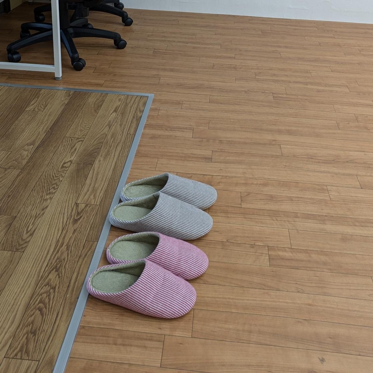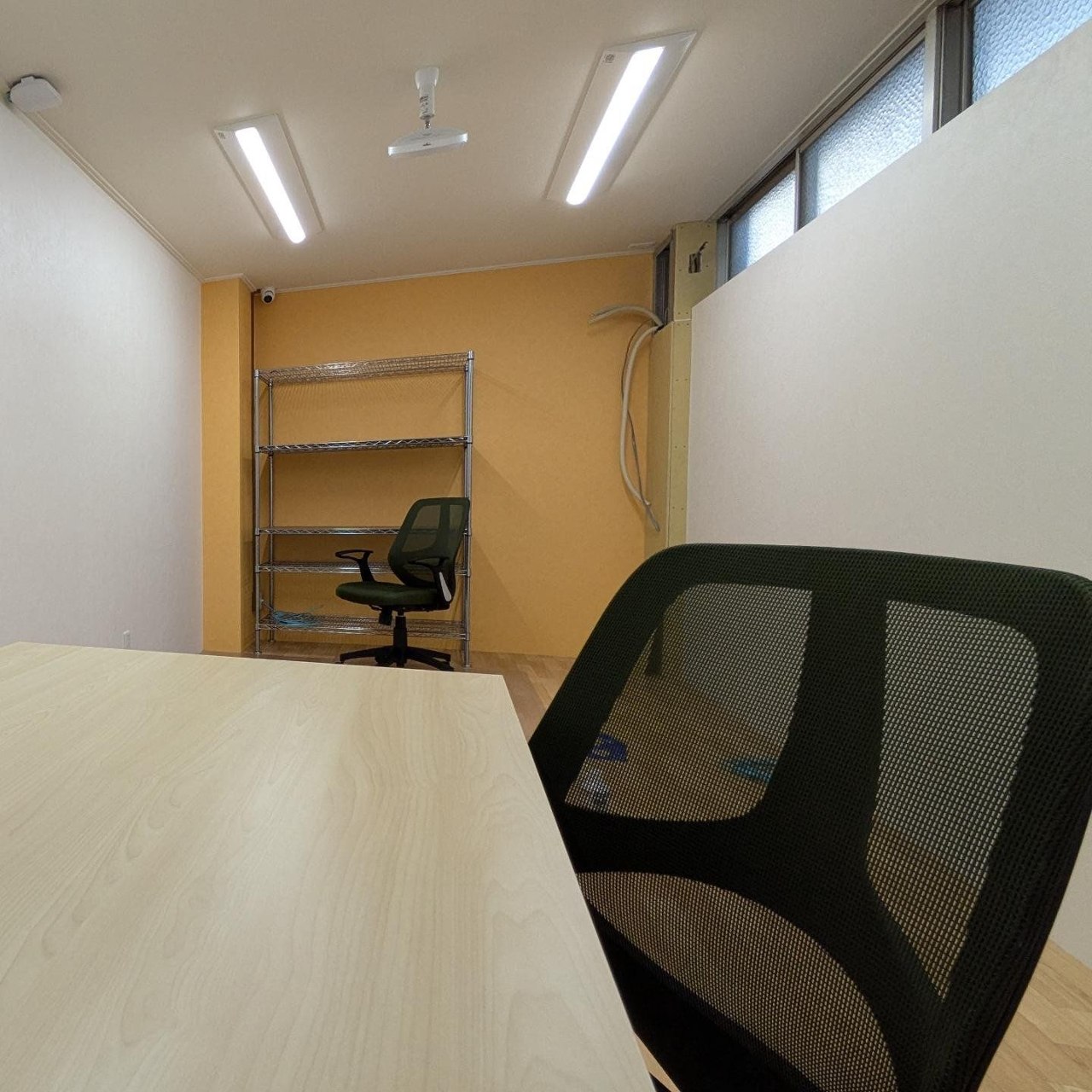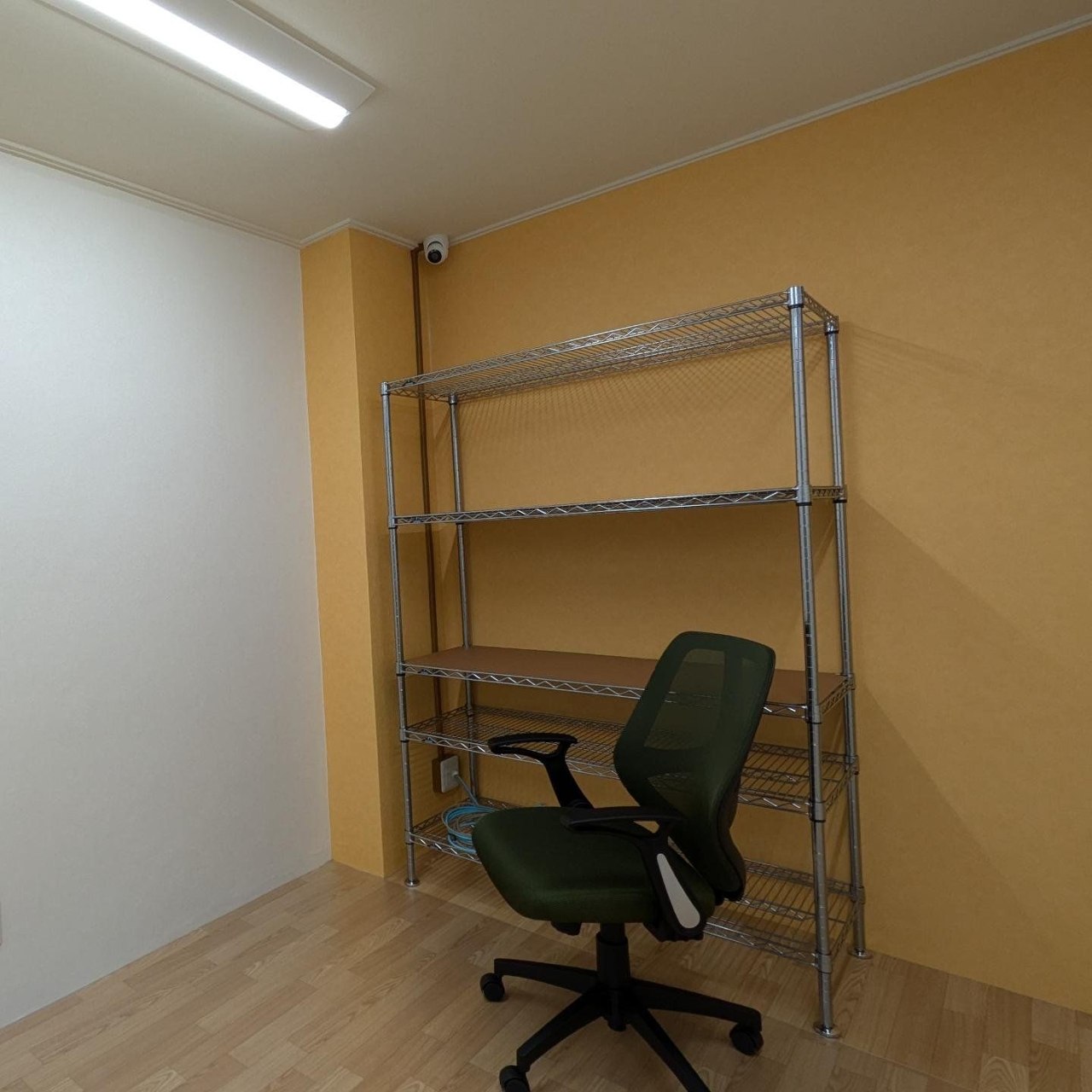 ほぼ内装仕上げが終わり、新しい家具の組み立て第一弾が完了しました。学習や交流活動で利用するスペースには、明るいグリーンのチェアと床の木目がベストマッチです。事務室には収納ラックが設置され、雰囲気が出てきました。