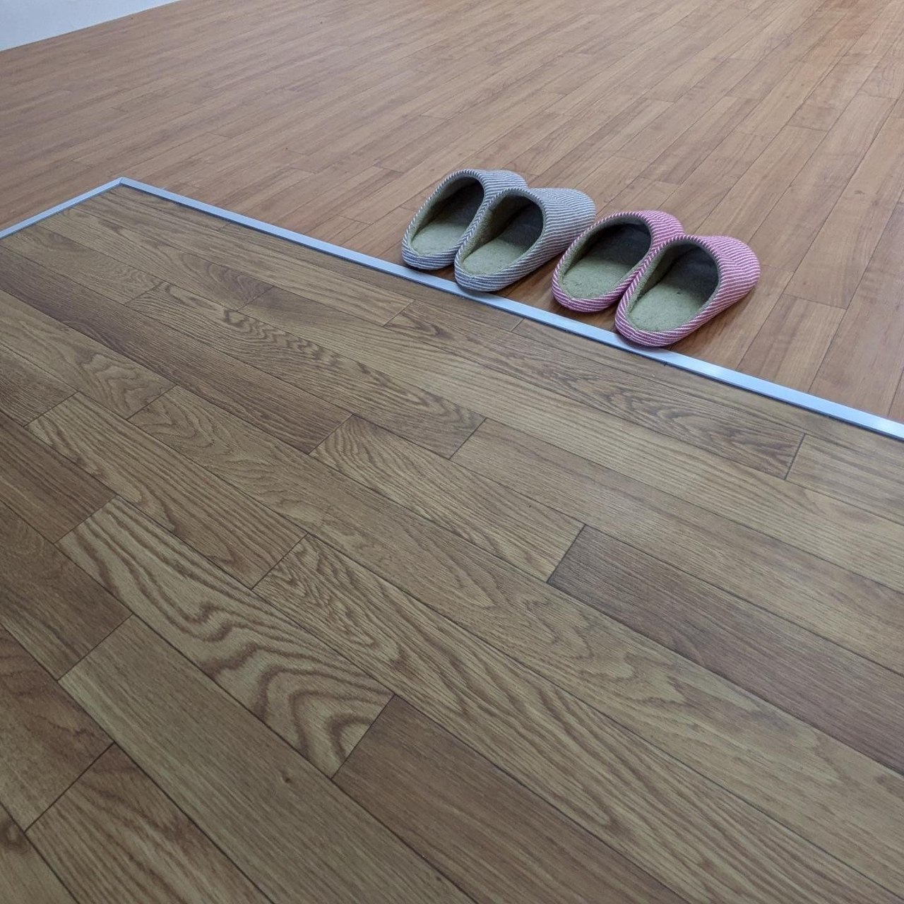玄関部分の床は2種類の床材を使い分けて、玄関らしい雰囲気でありながらも車椅子で移動しやすいようにフラットにしています。交流イベントの時に大人数でも広々と使えそうです!