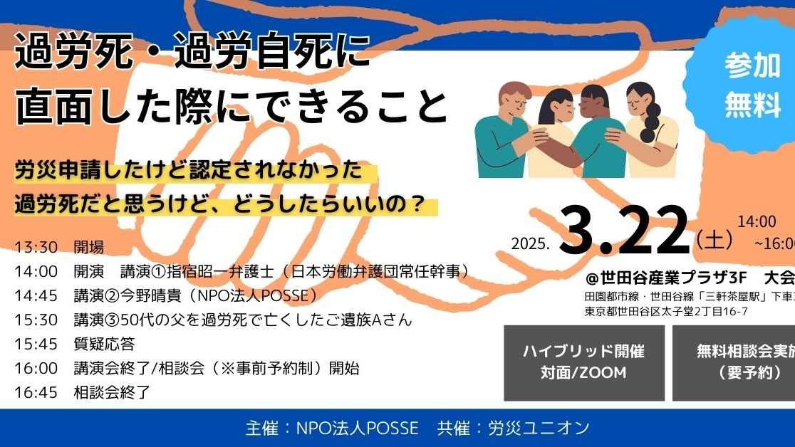 3月22日イベント「過労死・過労自死に直面した際にできること」を開催します!