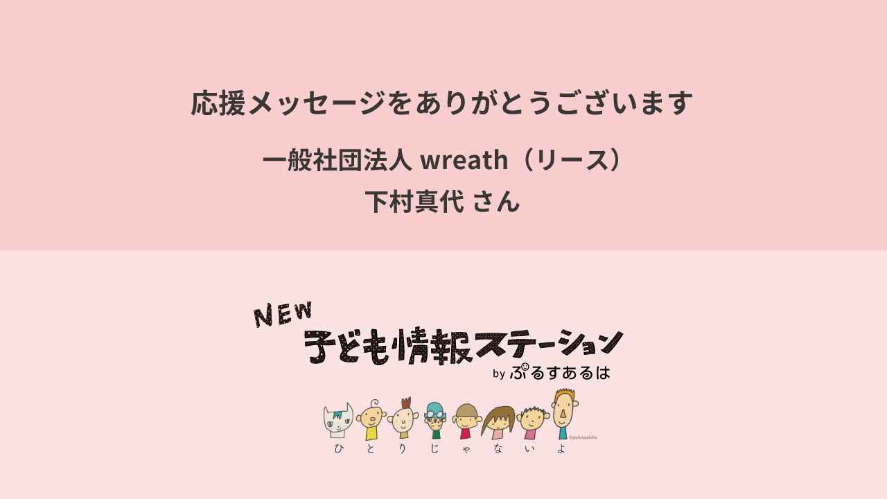 一般社団法人wreath(リース)・下村真代さんからの応援メッセージです