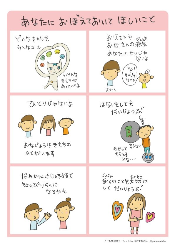 こんなことで困っている子どもたちがいることを知ってほしいです。子どもに向けたページですが、大人の人も読んでもらいたいです。