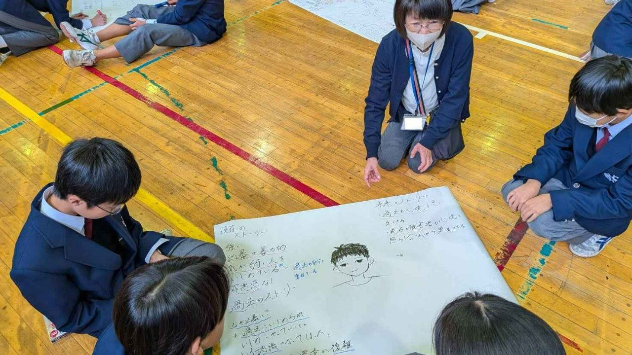 2025-11-13 11:18中学校で「いじめ防止教室」開催葛飾区立四ツ木中学校で10月29日、11月5日、8日の3日間、1年生に対する「いじめ防止教室」3回と、8日土曜日の学校公開日には全校生徒対象のワークショップ、保護者意見交換会も開催しました。 1年生対象の3回はいつものように、被害者・加害者・傍観者の3つの立場において「行動を変えよう」というエクササイズ中心の授業です。 この授業を3学年すべてが受けたということで、最終日の全校対象のワークショップでは、加害者が加害行為をやめるためにはどうしたら良いのかを考える「加害者の現在、過去、未来のストーリー」作りに挑戦しました。 保護者意見交換会には23人の参加があり、教職員の皆さん、レインボーリボンのスタッフも一緒に、リアルな話し合いができました。2025-11-13 11:18中学校で「いじめ防止教室」開催葛飾区立四ツ木中学校で10月29日、11月5日、8日の3日間、1年生に対する「いじめ防止教室」3回と、8日土曜日の学校公開日には全校生徒対象のワークショップ、保護者意見交換会も開催しました。 1年生対象の3回はいつものように、被害者・加害者・傍観者の3つの立場において「行動を変えよう」というエクササイズ中心の授業です。 この授業を3学年すべてが受けたということで、最終日の全校対象のワークショップでは、加害者が加害行為をやめるためにはどうしたら良いのかを考える「加害者の現在、過去、未来のストーリー」作りに挑戦しました。 保護者意見交換会には23人の参加があり、教職員の皆さん、レインボーリボンのスタッフも一緒に、リアルな話し合いができました。