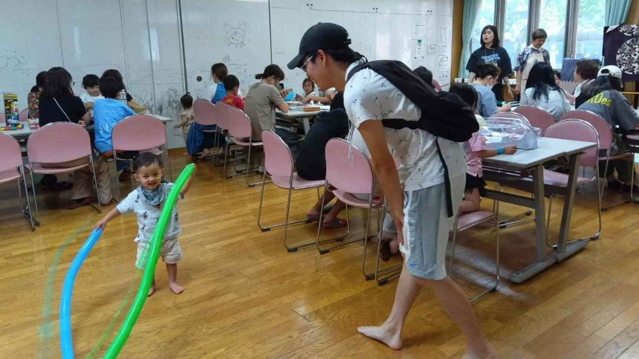 2025-10-13 15:35風船チャンバラごっこやら(^。^)10月11日のあおとこども食堂は子ども39人、保護者23人、ボランティア20人の合計82人が参加。お弁当も82食の提供でした。 細かい雨の降る中、室内遊びコーナーはギュウギュウ状態でしたが、ボランティアが持って来てくれたシュシュ手編みコーナーには大人もけっこうハマり(^^) 小さい子たちは風船チャンバラごっこにハマり ブロックコーナーでは赤ちゃんがぬいぐるみを寝かしつけ(^^) 元気に走り回る子もいましたが、なんとか無事にケガもなく終えることができました(^。^) 前回から置いている「子どもの声・意見箱」には 「シュシュを作るのが楽しかった!○○(ボランティアの名前)がヤバい!」など、3通のご意見が寄せられました(^ー^) お弁当はシーフードシチュー&バターライス♪ アメリカから帰国されたクニコさんが、久々に手作りクッキーをみんなにプレゼントしてくださいました(^^)2025-10-13 15:35風船チャンバラごっこやら(^。^)10月11日のあおとこども食堂は子ども39人、保護者23人、ボランティア20人の合計82人が参加。お弁当も82食の提供でした。 細かい雨の降る中、室内遊びコーナーはギュウギュウ状態でしたが、ボランティアが持って来てくれたシュシュ手編みコーナーには大人もけっこうハマり(^^) 小さい子たちは風船チャンバラごっこにハマり ブロックコーナーでは赤ちゃんがぬいぐるみを寝かしつけ(^^) 元気に走り回る子もいましたが、なんとか無事にケガもなく終えることができました(^。^) 前回から置いている「子どもの声・意見箱」には 「シュシュを作るのが楽しかった!○○(ボランティアの名前)がヤバい!」など、3通のご意見が寄せられました(^ー^) お弁当はシーフードシチュー&バターライス♪ アメリカから帰国されたクニコさんが、久々に手作りクッキーをみんなにプレゼントしてくださいました(^^)
