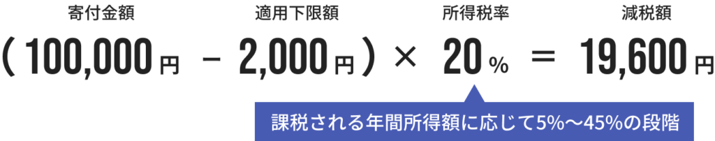 所得金額に応じた税率を掛けて控除額を決定するため、所得金額に比べて寄付金額が大きい場合に減税効果が大きくなります。