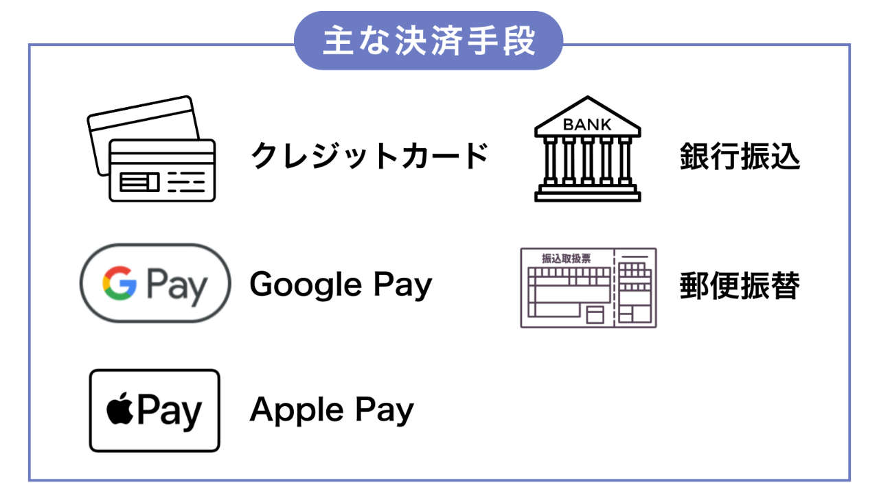 多種多様な決済手段をご用意しております。