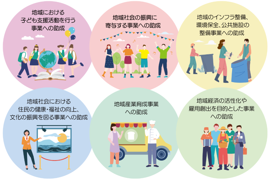 - 地域社会の健全な発展・振興を目的とする、まちづくり貢献事業への助成