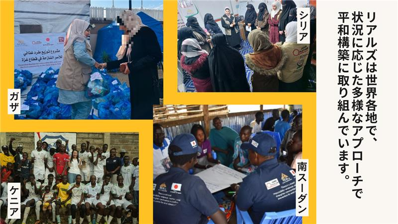 REALsは世界各地で、状況に応じた多様なアプローチで平和構築に取り組んでいます。
