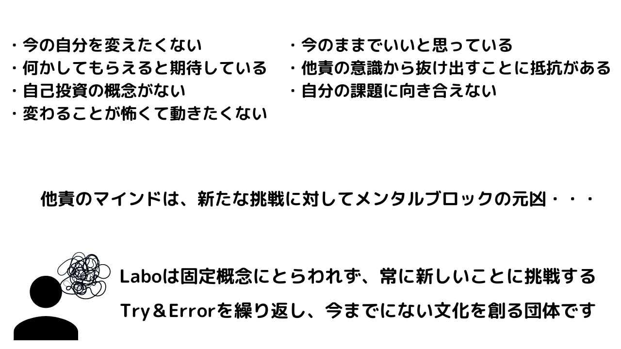 - あなたのやりたいことを『カタチ』にするためにLaboメンバー同士の繋がりを応援します。