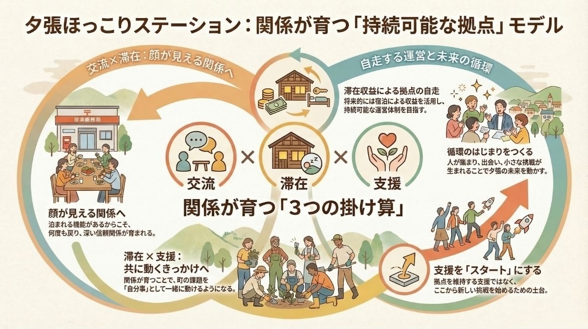 《交流 × 滞在 × 支援》を掛け合わせて、持続可能な拠点モデルをつくります。