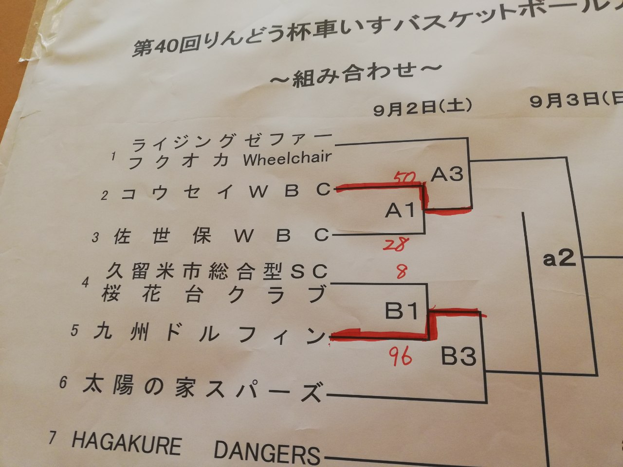 2023-09-02 13:48第3試合いよいよシードチームの登場 第3試合 Aコート ライジングゼファーフクオカWheelchair(シード)✕コウセイWBC(第1試合勝者) Bコート 九州ドルフィン(第1試合勝者)✕太陽の家スパーズ(シード)2023-09-02 13:48第3試合いよいよシードチームの登場 第3試合 Aコート ライジングゼファーフクオカWheelchair(シード)✕コウセイWBC(第1試合勝者) Bコート 九州ドルフィン(第1試合勝者)✕太陽の家スパーズ(シード)