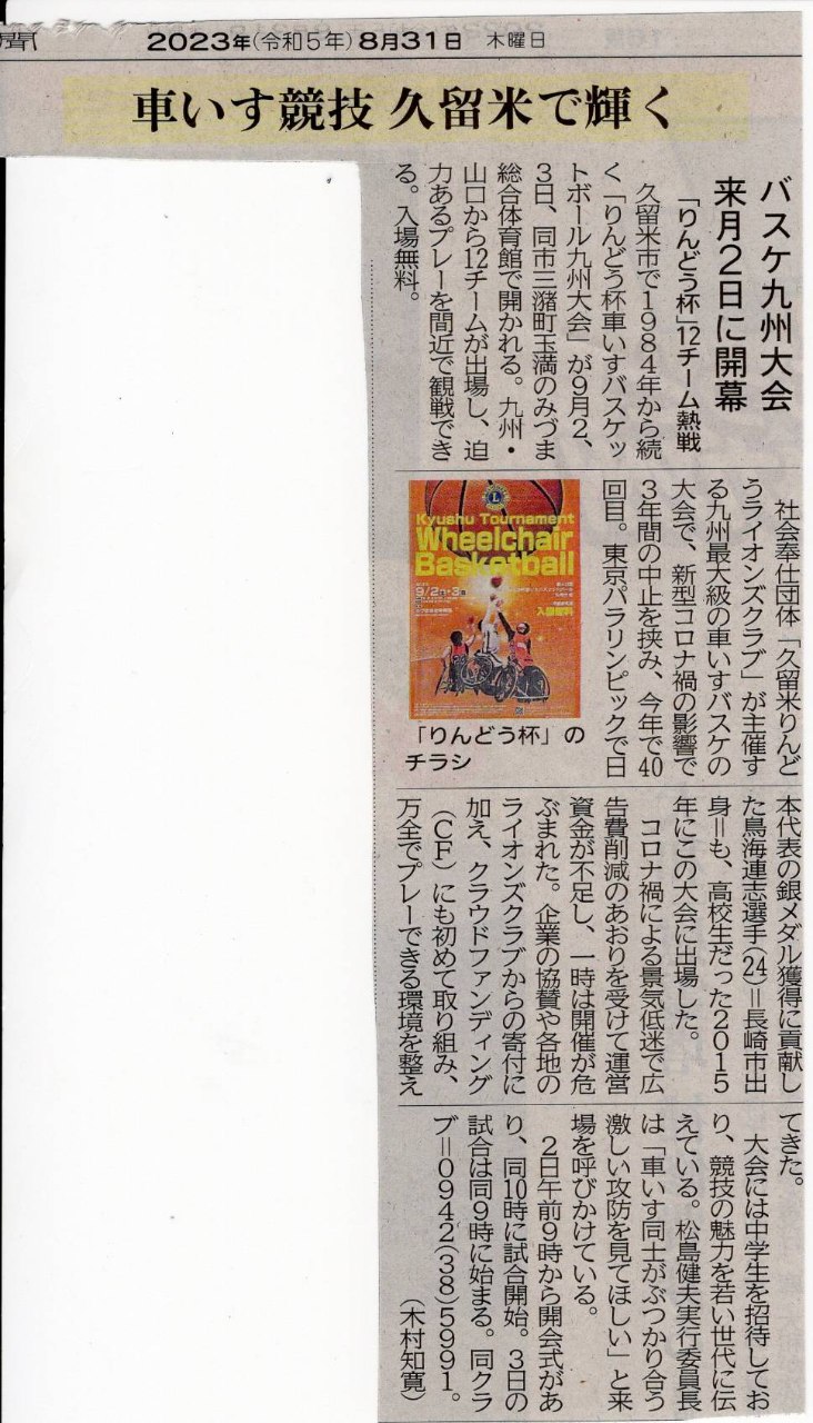奉仕クラブ団体の久留米りんどうライオンズクラブは、1984年( 昭和59年 )より車いすバスケットボール大会を開催してきました。 この大会を通じてパラリンピック出場選手も生まれた九州で最も大きな大会です。 毎年、選手の皆さんは、今大会に参加することを目標に練習に励んでおられます。 今年は4年ぶりの開催予定となりましたが、長引く新型コロナウイルスの影響により、社会経済の不安定や協賛企業の広告費削減などで資金が不足しております。 大会を開催するにあたり、会場代、審判代、宣伝費等、運営資金が200万円程度必要です。 協賛企業様やクラブ会員、個人様からの寄付で100万円程度確保できますが、残り100万円不足しています。 大会を継続し、選手の皆さんに全力でプレーしていただけるよう、皆さまの力を貸してください。