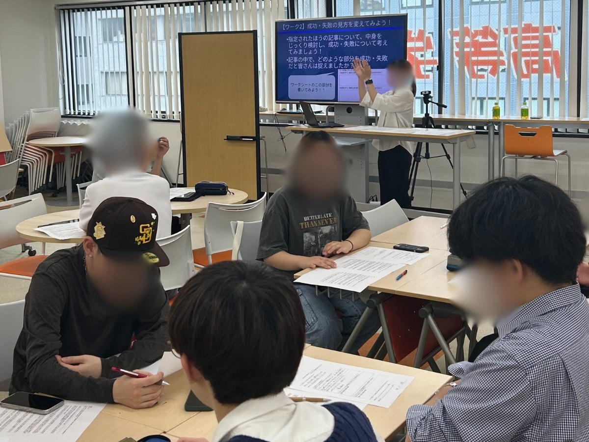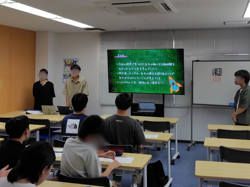 「失敗は本当に失敗なのか?」という授業では、失敗を成長の糧と捉え直すワークを実施。「自己分析をしてみよう!」という授業では、人生曲線を用いて過去の経験を振り返り、自分の強みや価値観を探究しました。