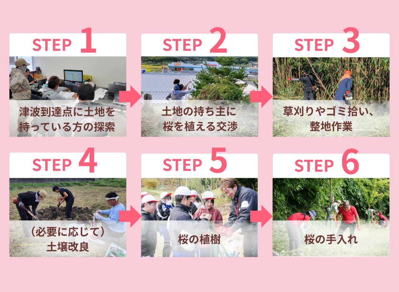 だからこそ、私たちはあの日津波が到達した地点に桜を植え続けています。