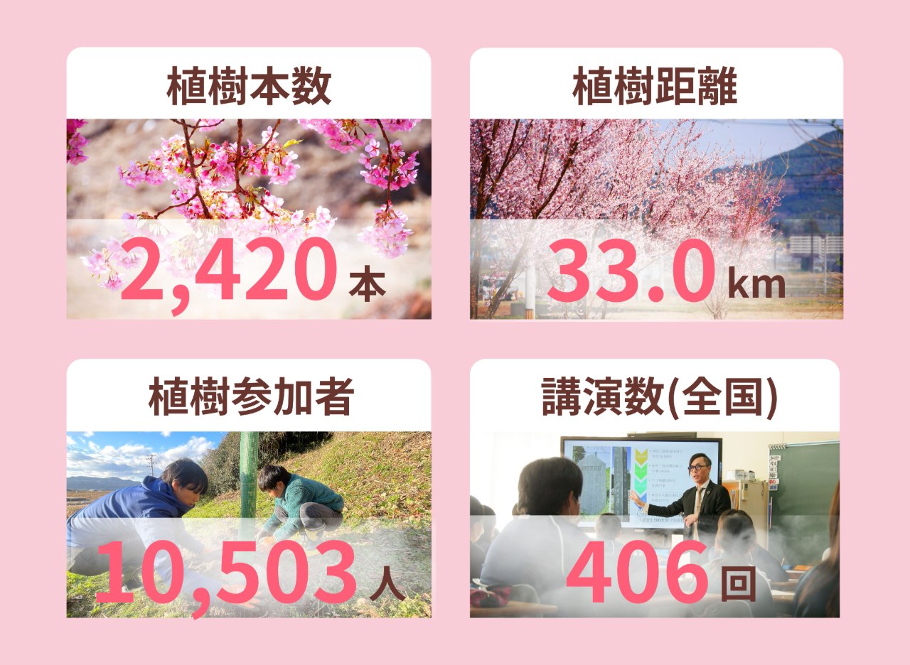 これまでに植樹した桜は2,420本にのぼります。