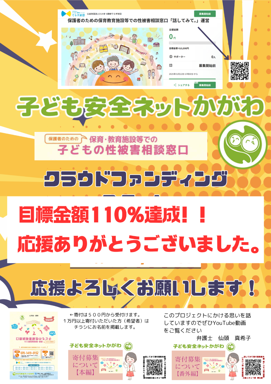 引き続き、『子どもたちを守ることができる社会』を作ることに関心を持ち,私たちのことも応援くださいますよう,よろしくお願いいたします!