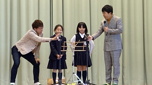 概 要:児童が考え、練習してきた漫才をプロの芸人に披露後、コメントをもらい、地域の大人など他者に伝える力を身に付ける。