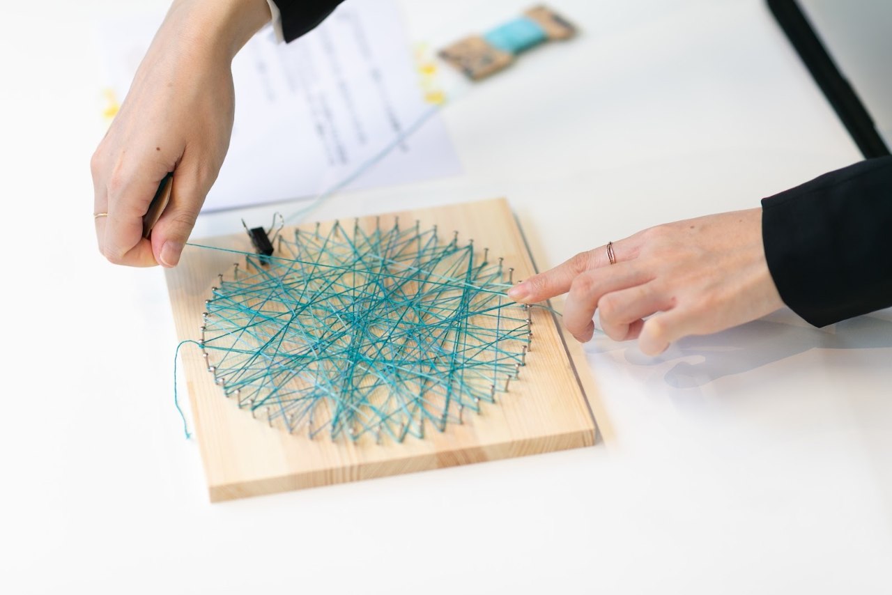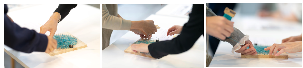 “共にセーフティネットを編んでいく”このプロセスを、10周年という節目のイベントにお越しいただいた皆様と一緒に、記念品として表現したものがストリングアートです。