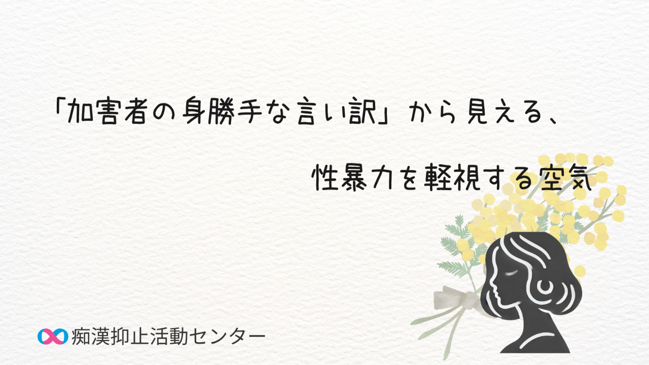 2025-08-06 09:23「加害者の身勝手な言い訳」から見える、性暴力を軽視する空気こんにちは。痴漢抑止活動センターの松永弥生です。 今日は、最近報道されている複数の痴漢・盗撮事件について、どうしても話しておきたいことがあります。 それは、事件そのものよりも、加害者たちの“言い訳”が、どれだけ被害者を踏みにじるものかということです。2025-08-06 09:23「加害者の身勝手な言い訳」から見える、性暴力を軽視する空気こんにちは。痴漢抑止活動センターの松永弥生です。 今日は、最近報道されている複数の痴漢・盗撮事件について、どうしても話しておきたいことがあります。 それは、事件そのものよりも、加害者たちの“言い訳”が、どれだけ被害者を踏みにじるものかということです。